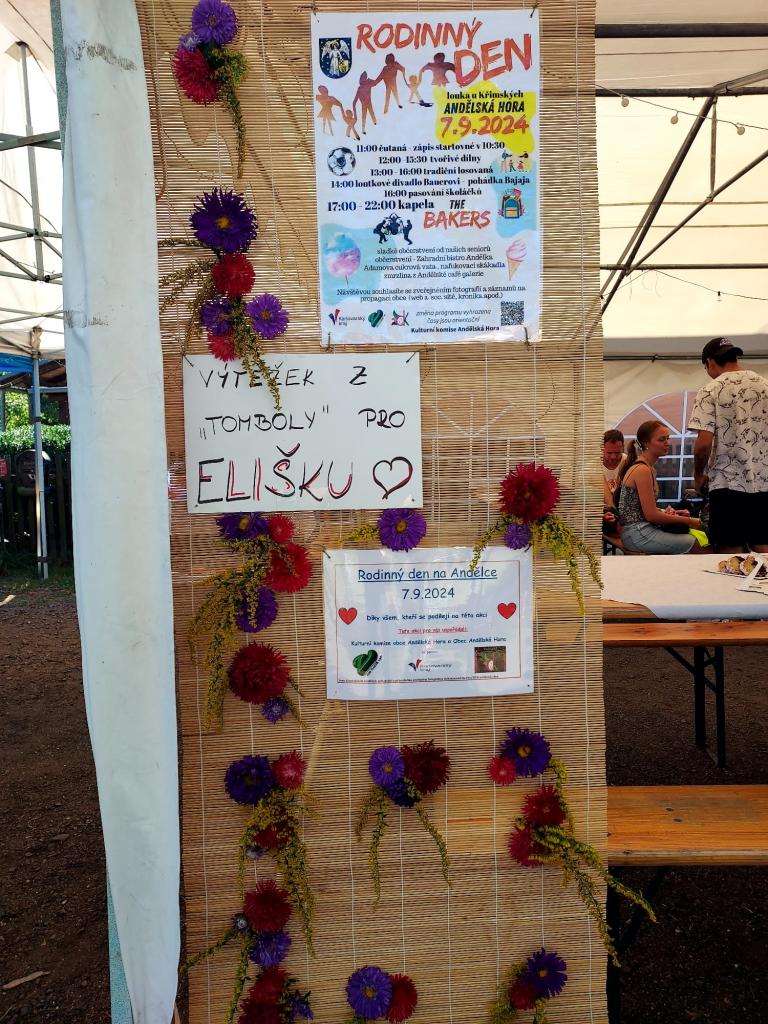 Kromě toho probíhala tombola, jejíž výtěžek byl věnován léčbě nemocné Elišky. Ceny do tomboly věnovali místní občané, což zdůraznilo silný komunitní duch celé akce.